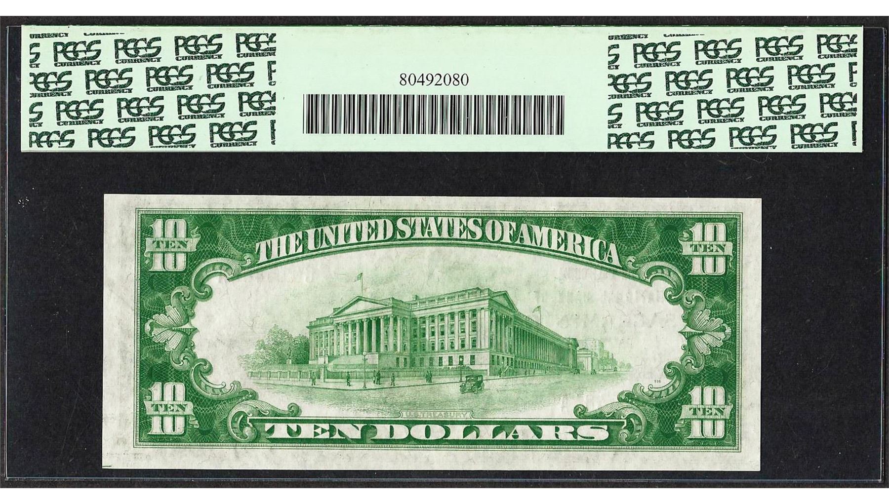 One 1929 $10 NB of Sacramento, CA CH# 8504 National Currency Note PCGS Very Choice New 64PPQ. PCGS Graded.