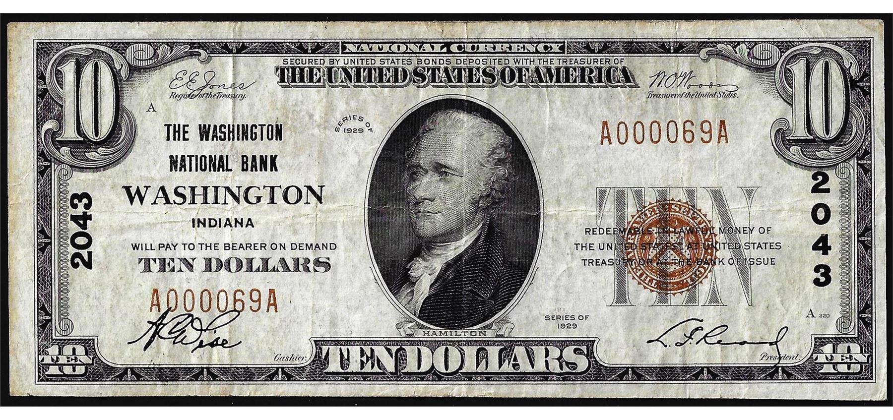 One 1929 $10 NB of Washington, District of Columbia CH# 2043 National Currency Note.