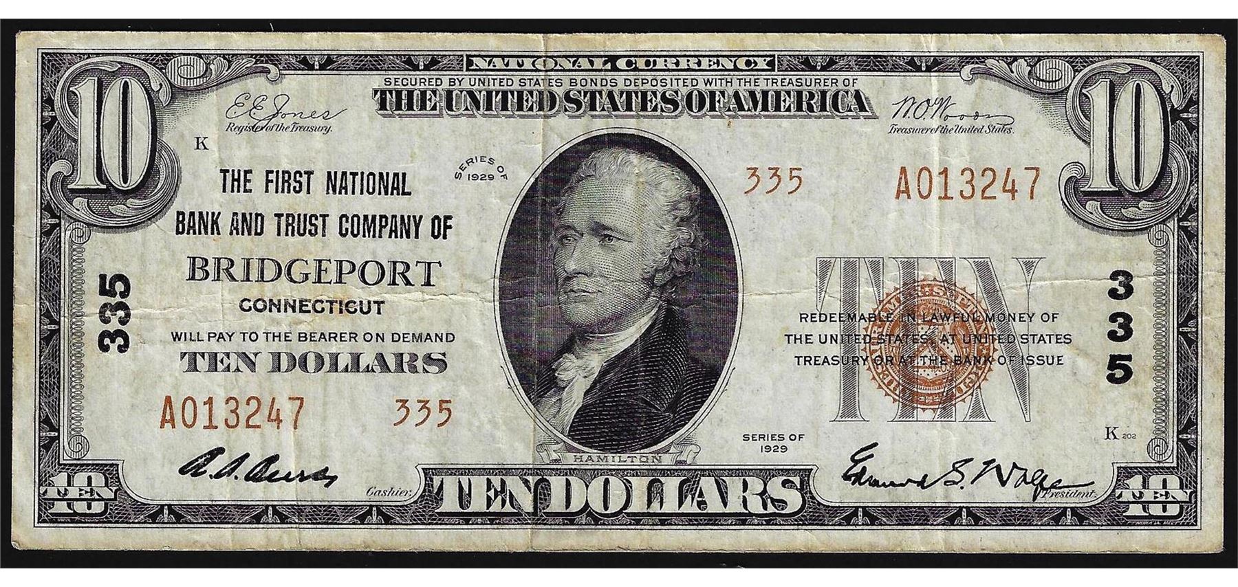 1929 $10 National Bank of Bridgeport, Connecticut National Currency Note CH# 335