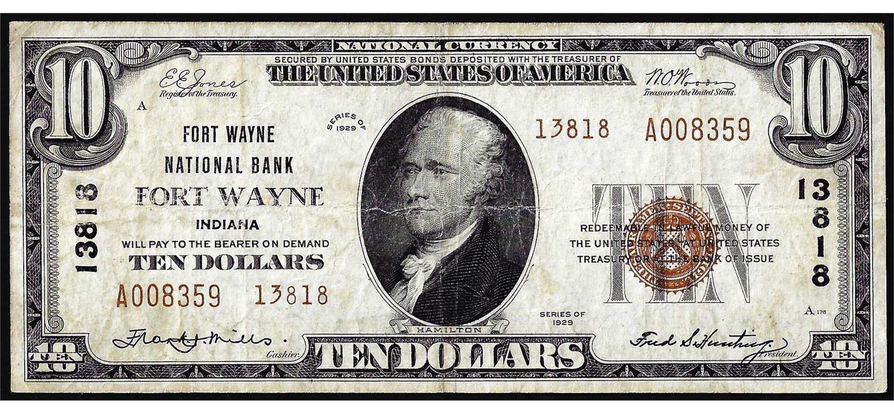 1929 $10 National Bank of Fort Wayne, Indiana CH# 13818 National Currency Note