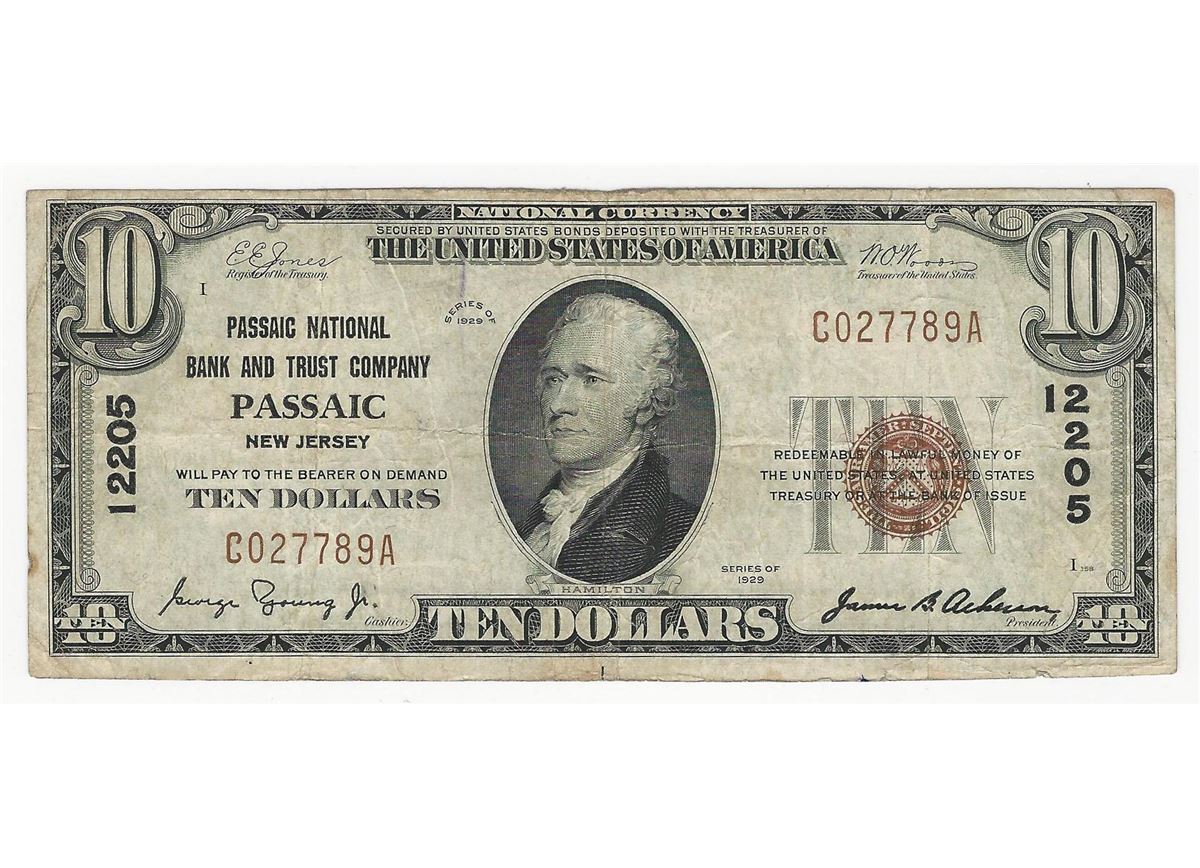 One 1929 $10 Passaic New Jersey National Currency Note.