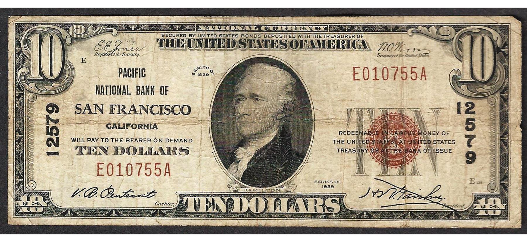 1929 $10 San Francisco California National Currency Note CH# 12579