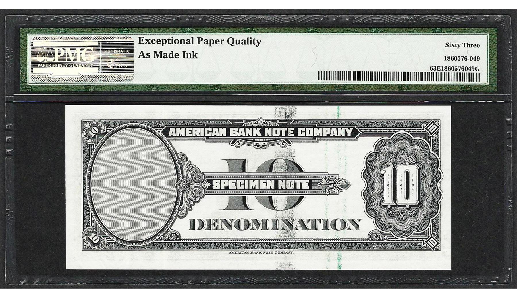 1929 10 Unit American Bank Note Co. "Test Note" PMG Choice Uncirculated 63EPQ