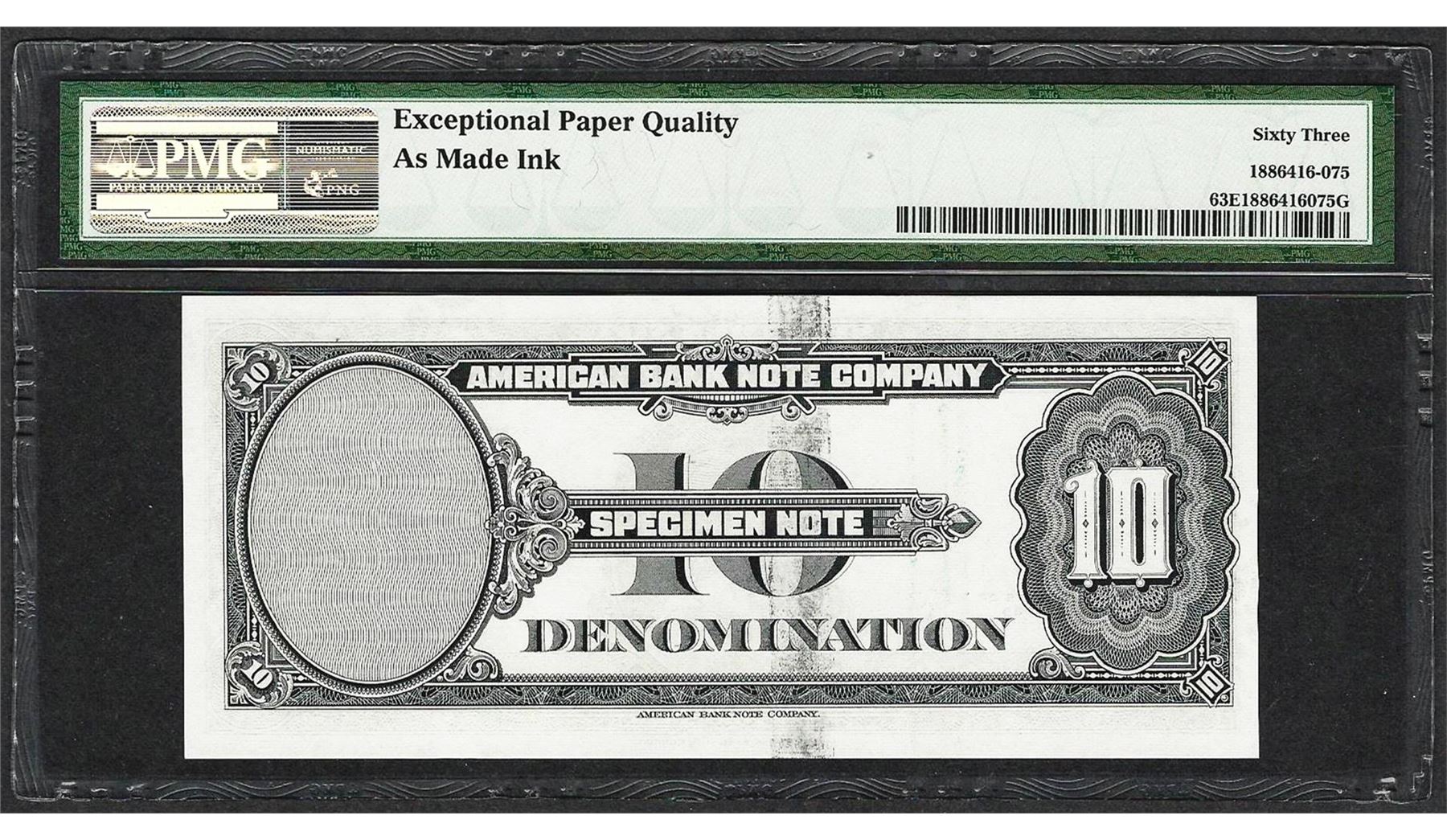 1929 10 Unit American Bank Note Co. "Test Note" PMG Choice Uncirculated 63EPQ