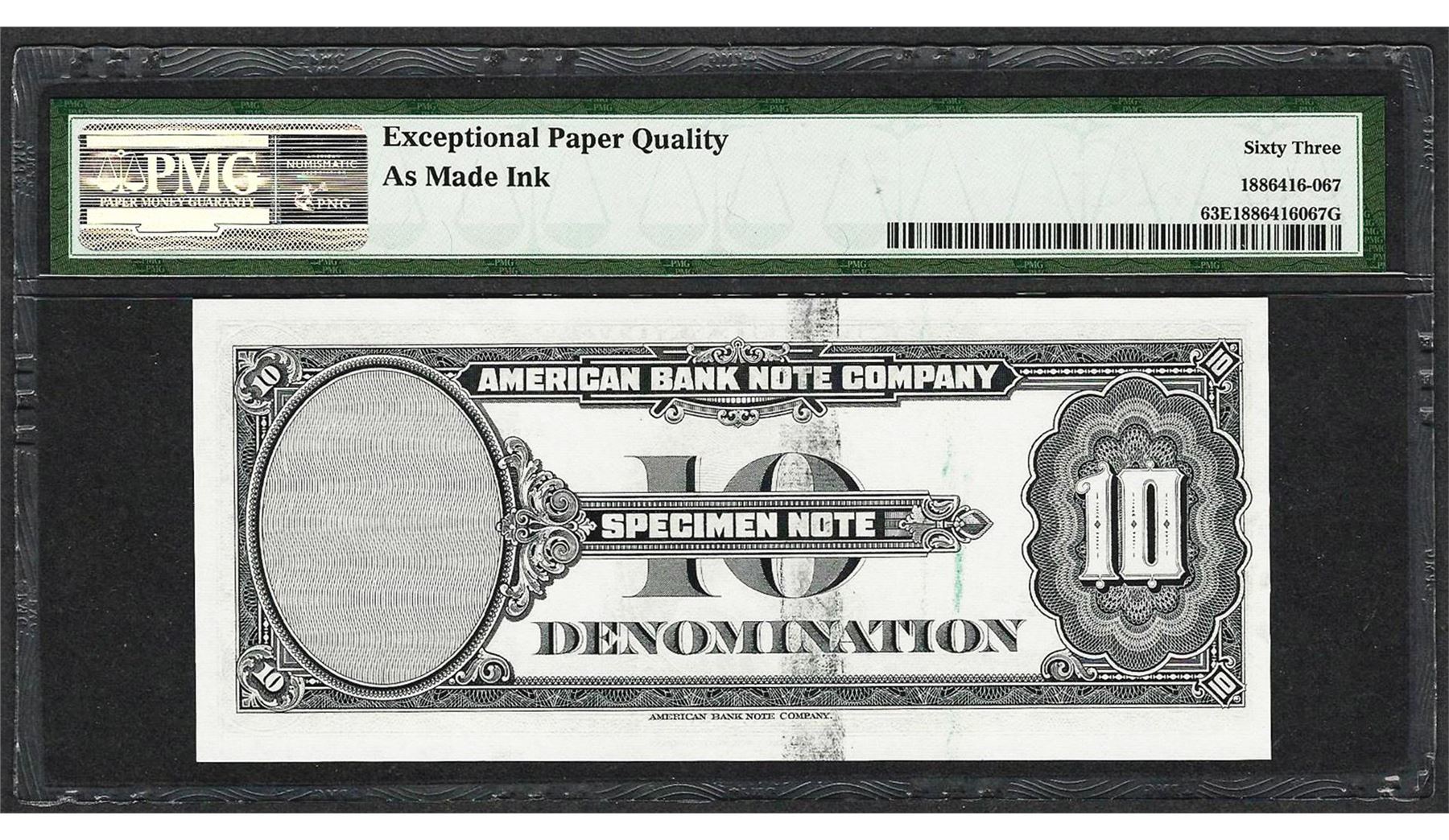 1929 10 Unit American Bank Note Co. "Test Note" PMG Choice Uncirculated 63EPQ