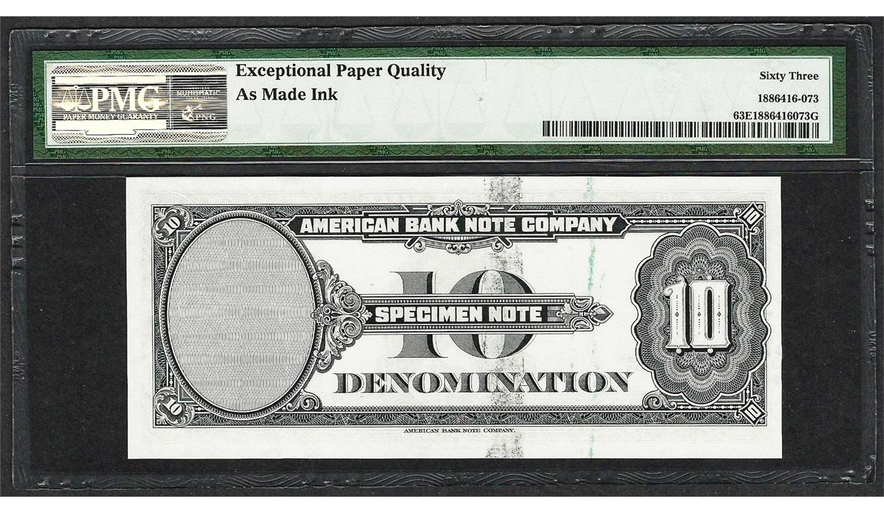 1929 10 Unit American Bank Note Co. "Test Note" PMG Choice Uncirculated 63EPQ