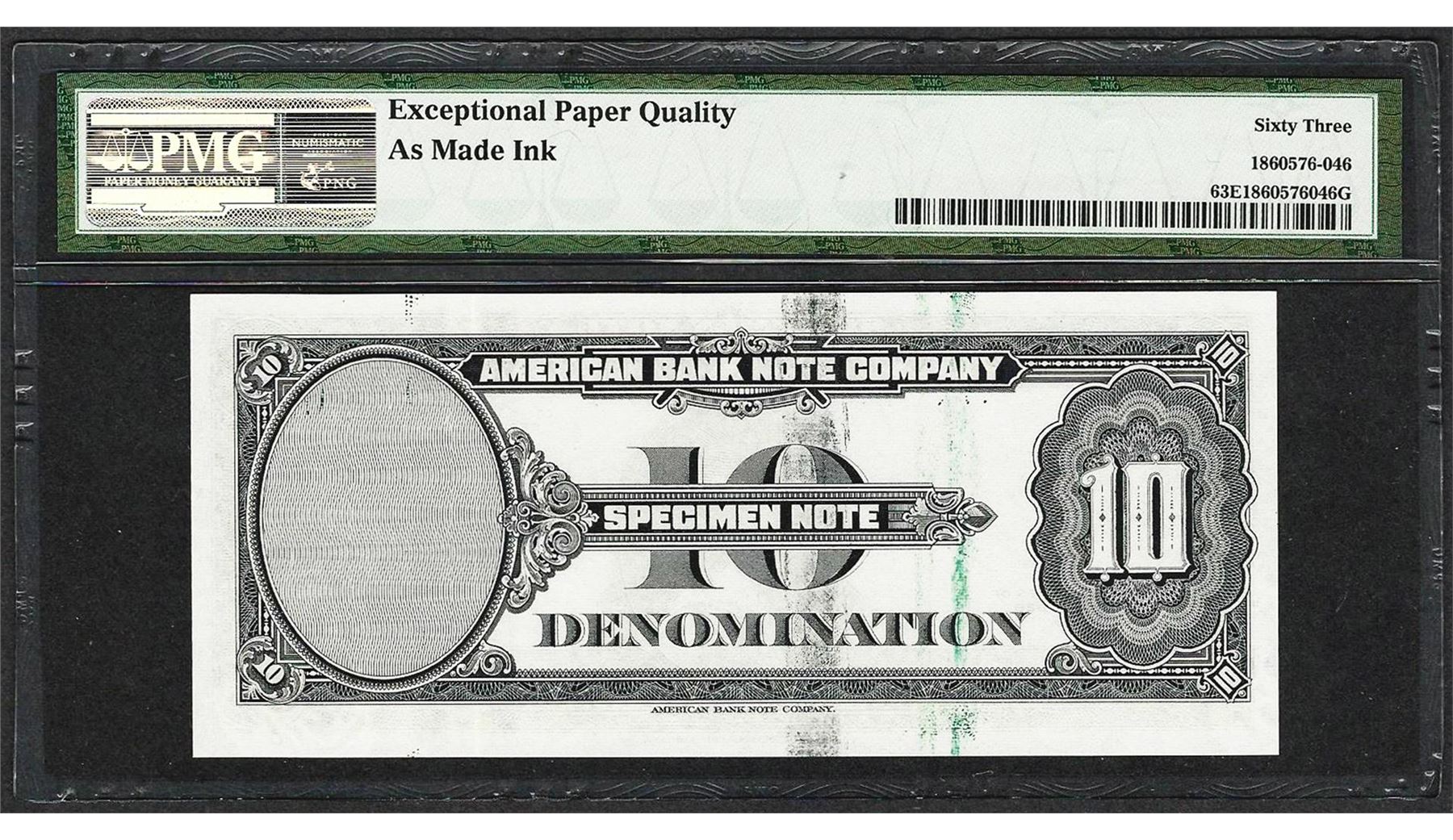 1929 10 Unit American Bank Note Co. "Test Note" PMG Choice Uncirculated 63EPQ