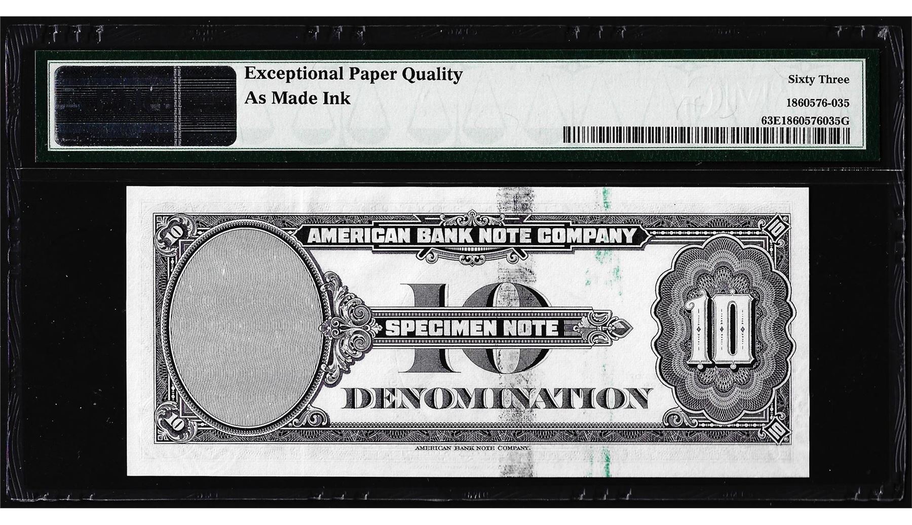 1929 10 Unit American Bank Note Co. "Test Note" PMG Choice Uncirculated 63EPQ