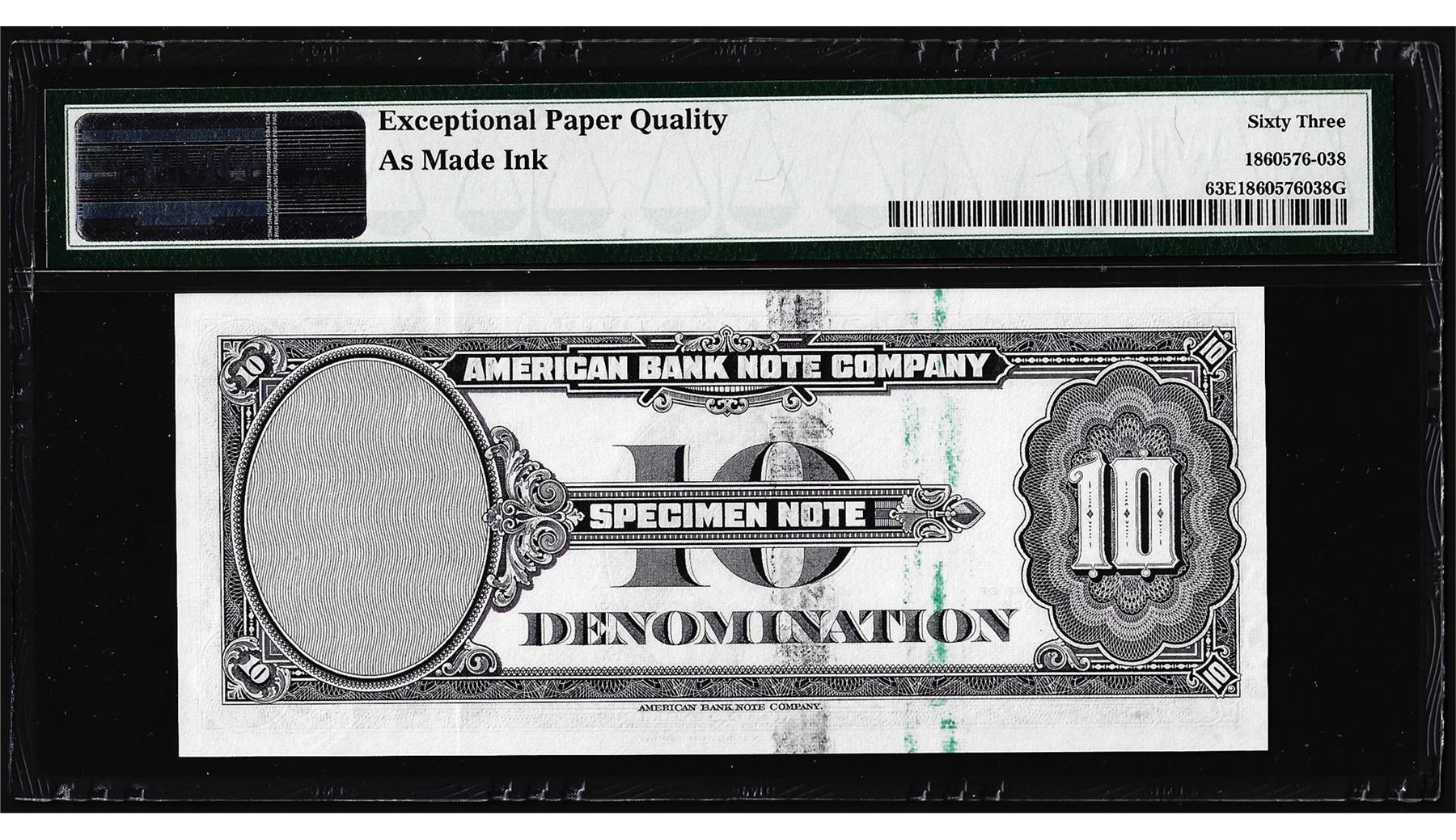1929 10 Unit American Bank Note Co. "Test Note" PMG Choice Uncirculated 63EPQ