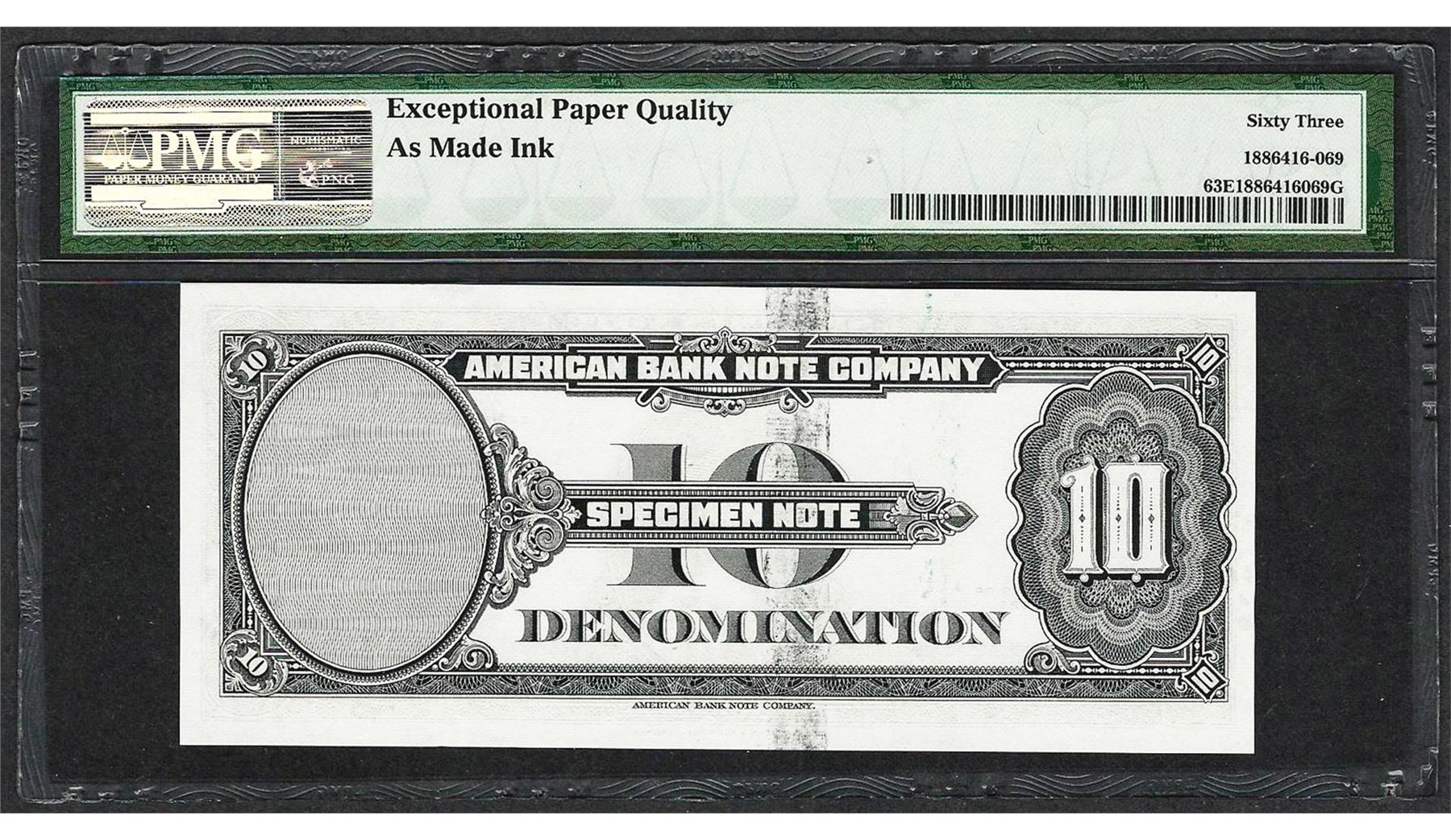 1929 10 Unit American Bank Note Co. "Test Note" PMG Choice Uncirculated 63EPQ