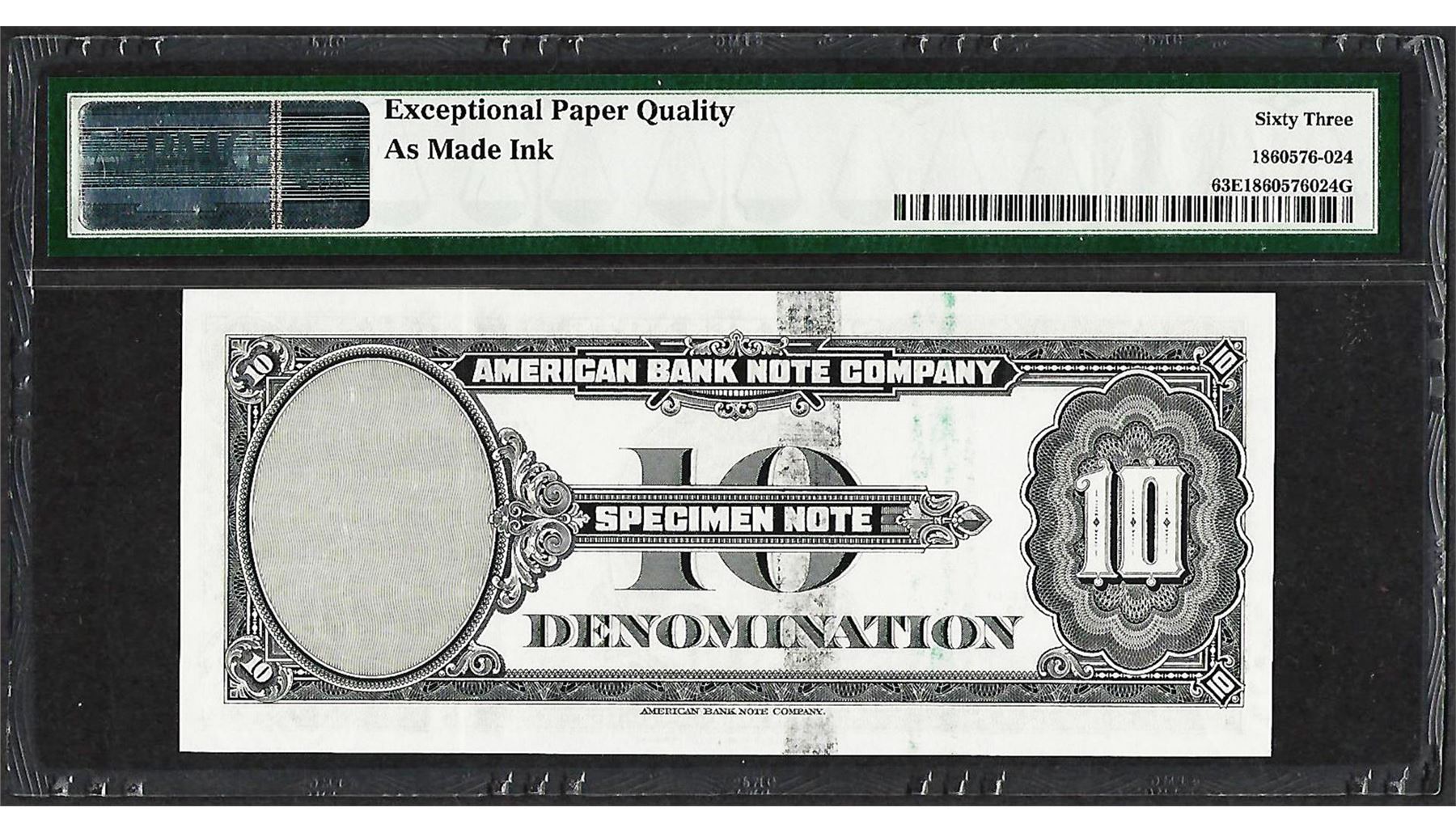 1929 10 Unit American Bank Note Co. "Test Note" PMG Choice Uncirculated 63EPQ