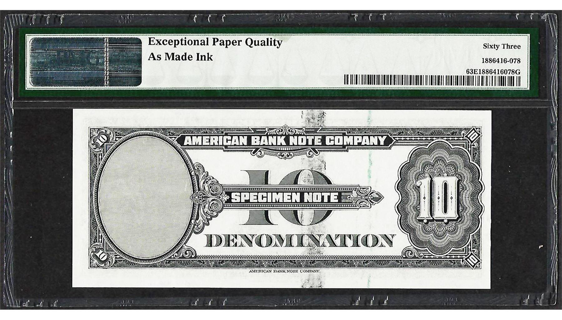 1929 10 Unit American Bank Note Co. "Test Note" PMG Choice Uncirculated 63EPQ