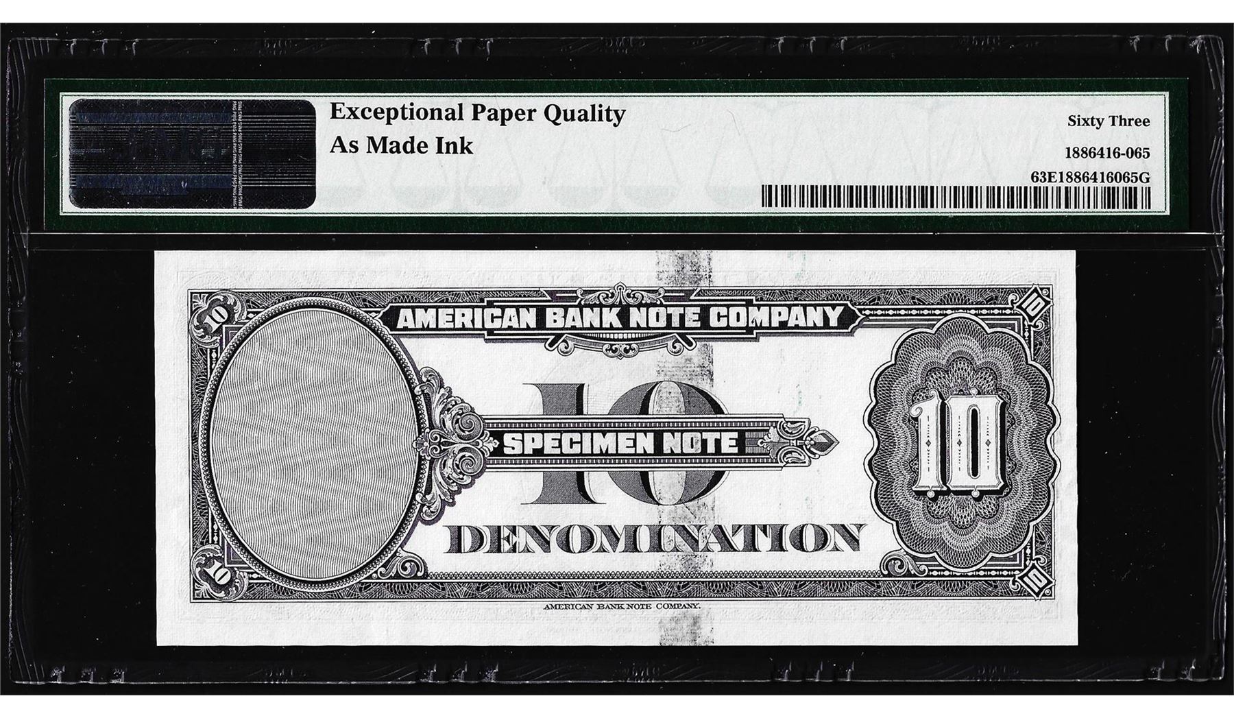 1929 10 Unit American Bank Note Co. "Test Note" PMG Choice Uncirculated 63EPQ