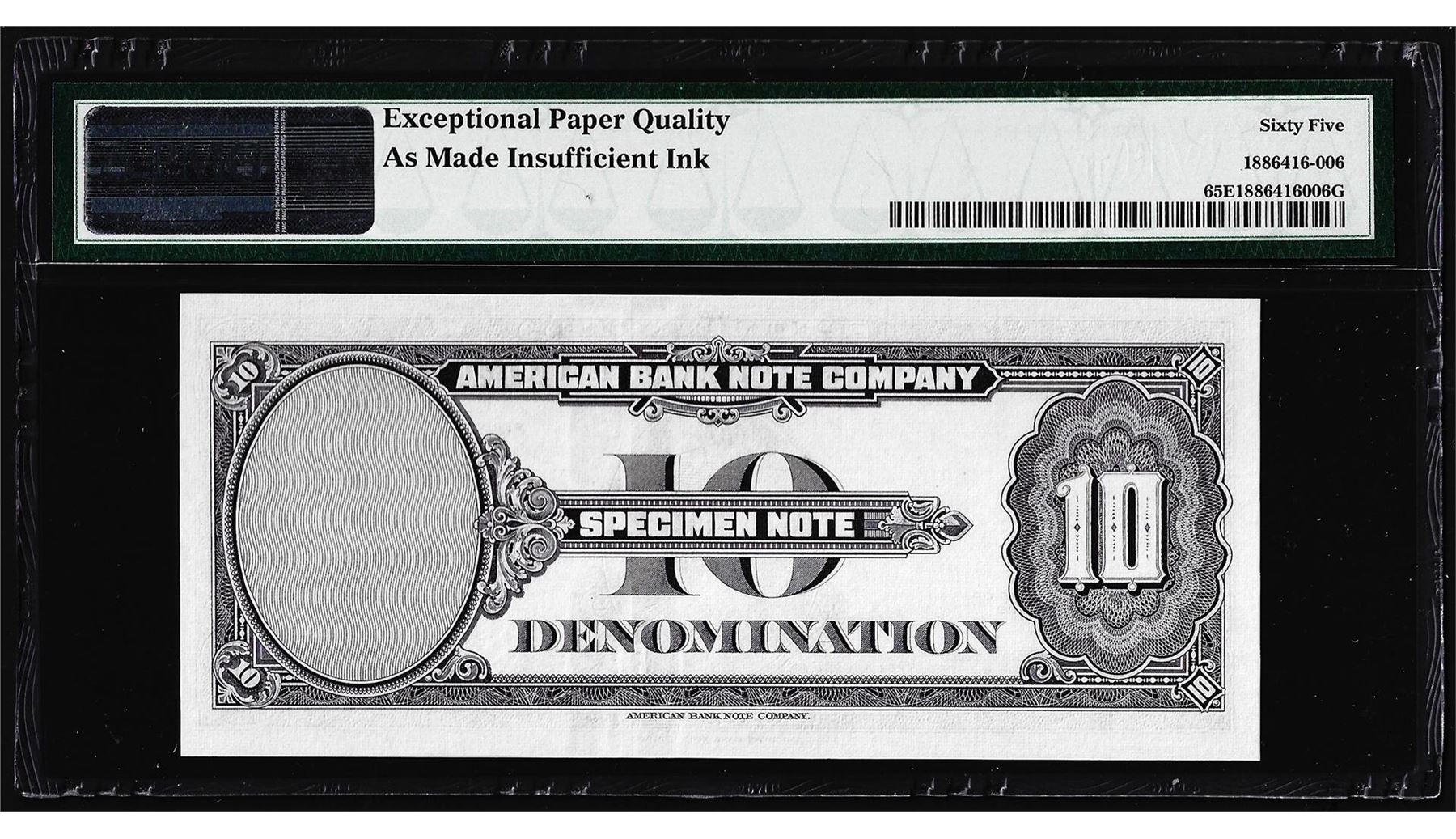 1929 10 Unit American Bank Note Co. "Test Note" PMG Gem Uncirculated 65EPQ