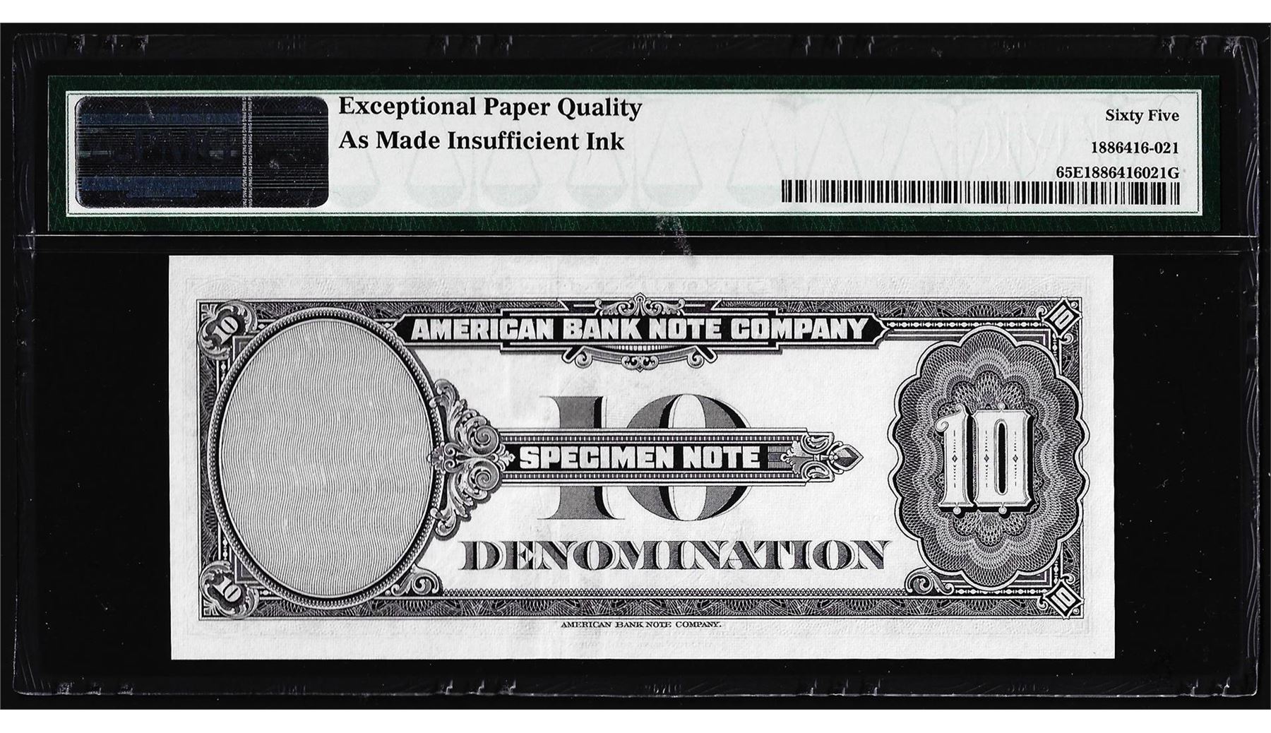 1929 10 Unit American Bank Note Co. "Test Note" PMG Gem Uncirculated 65EPQ