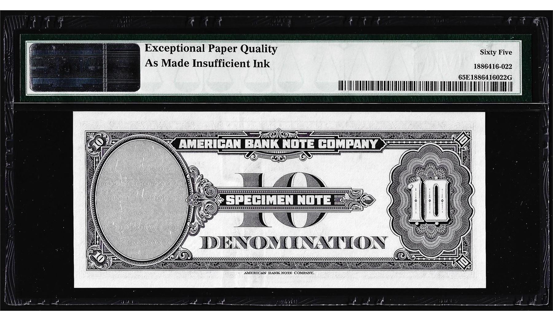 1929 10 Unit American Bank Note Co. "Test Note" PMG Gem Uncirculated 65EPQ