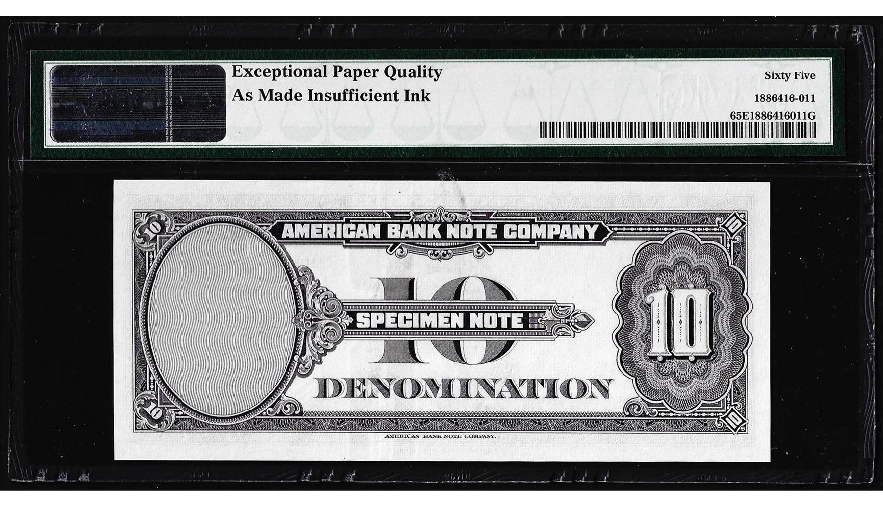 1929 10 Unit American Bank Note Co. "Test Note" PMG Gem Uncirculated 65EPQ