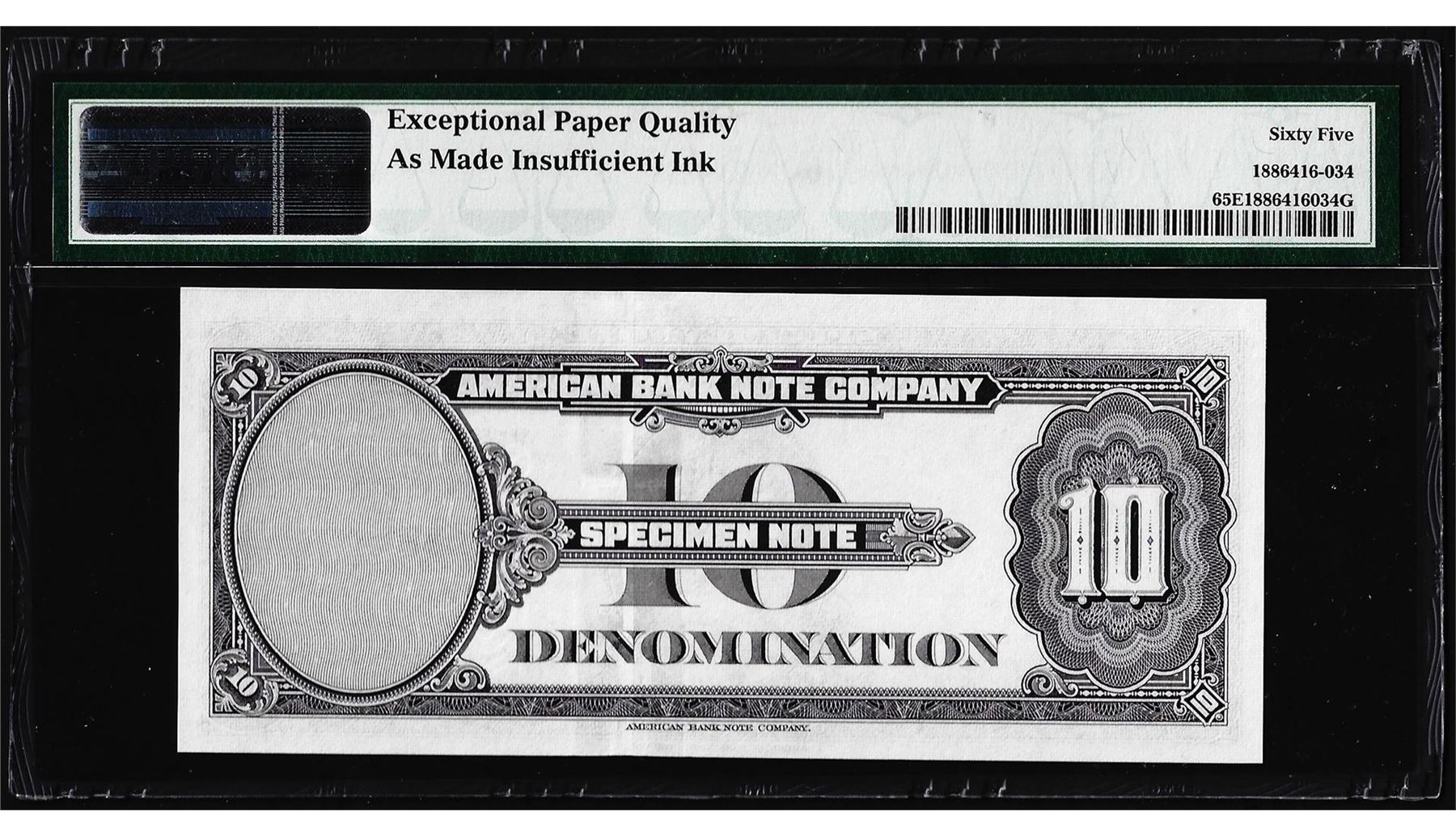 1929 10 Unit American Bank Note Co. "Test Note" PMG Gem Uncirculated 65EPQ