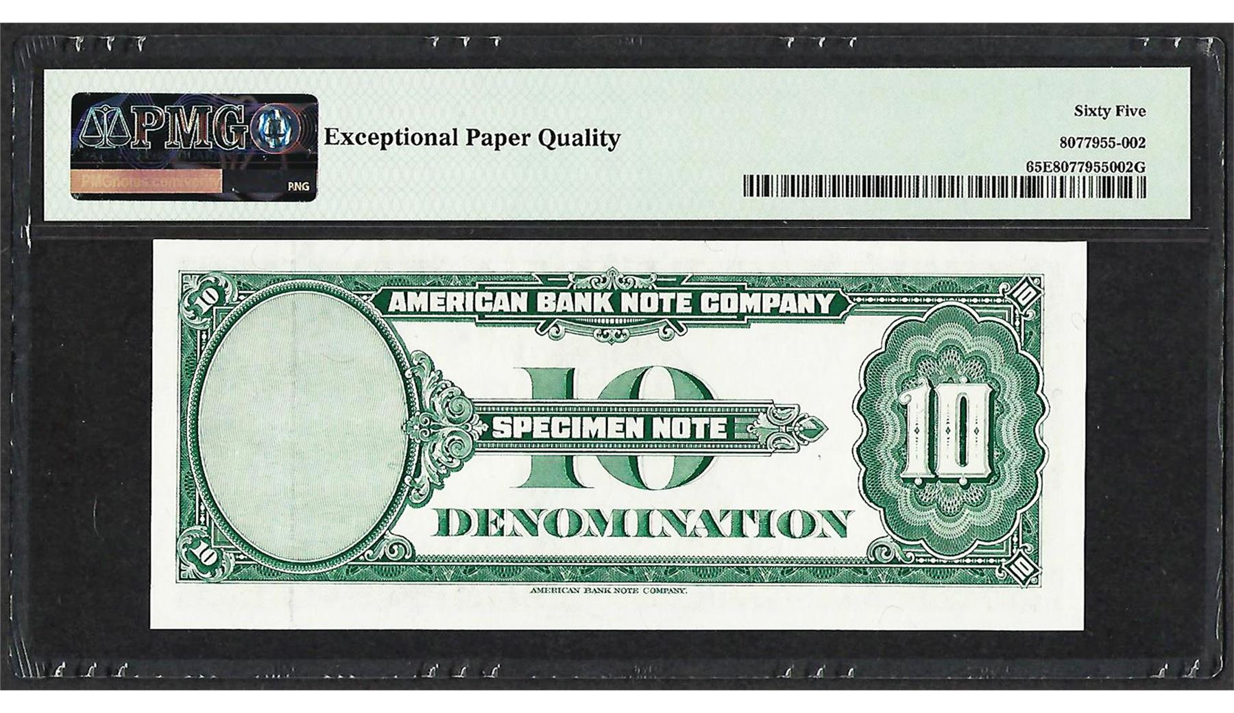 1929 10 Unit American Bank Note Co. "Test Note" PMG Gem Uncirculated 65EPQ