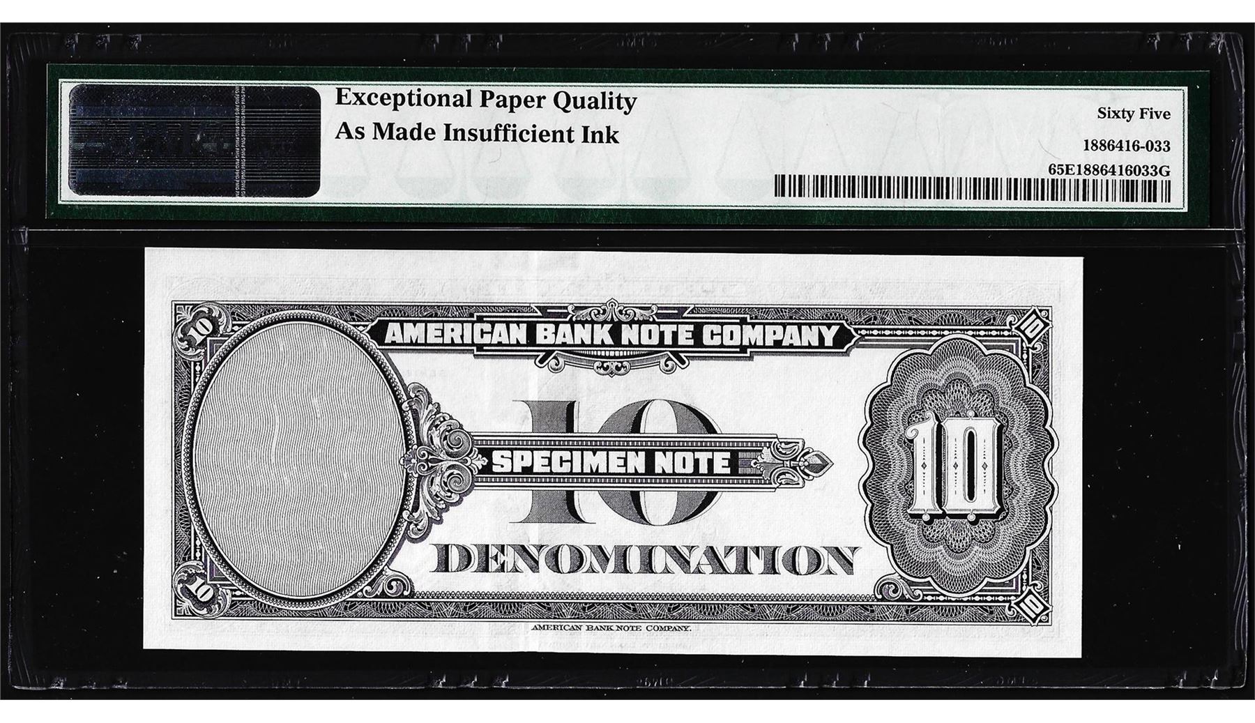 1929 10 Unit American Bank Note Co. "Test Note" PMG Gem Uncirculated 65EPQ