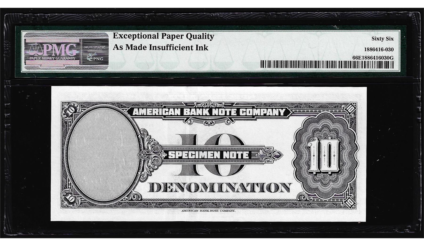 1929 10 Unit American Bank Note Co.  Test Note  PMG Gem Uncirculated 66EPQ