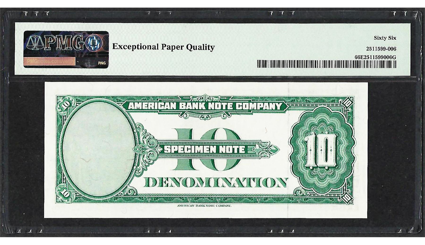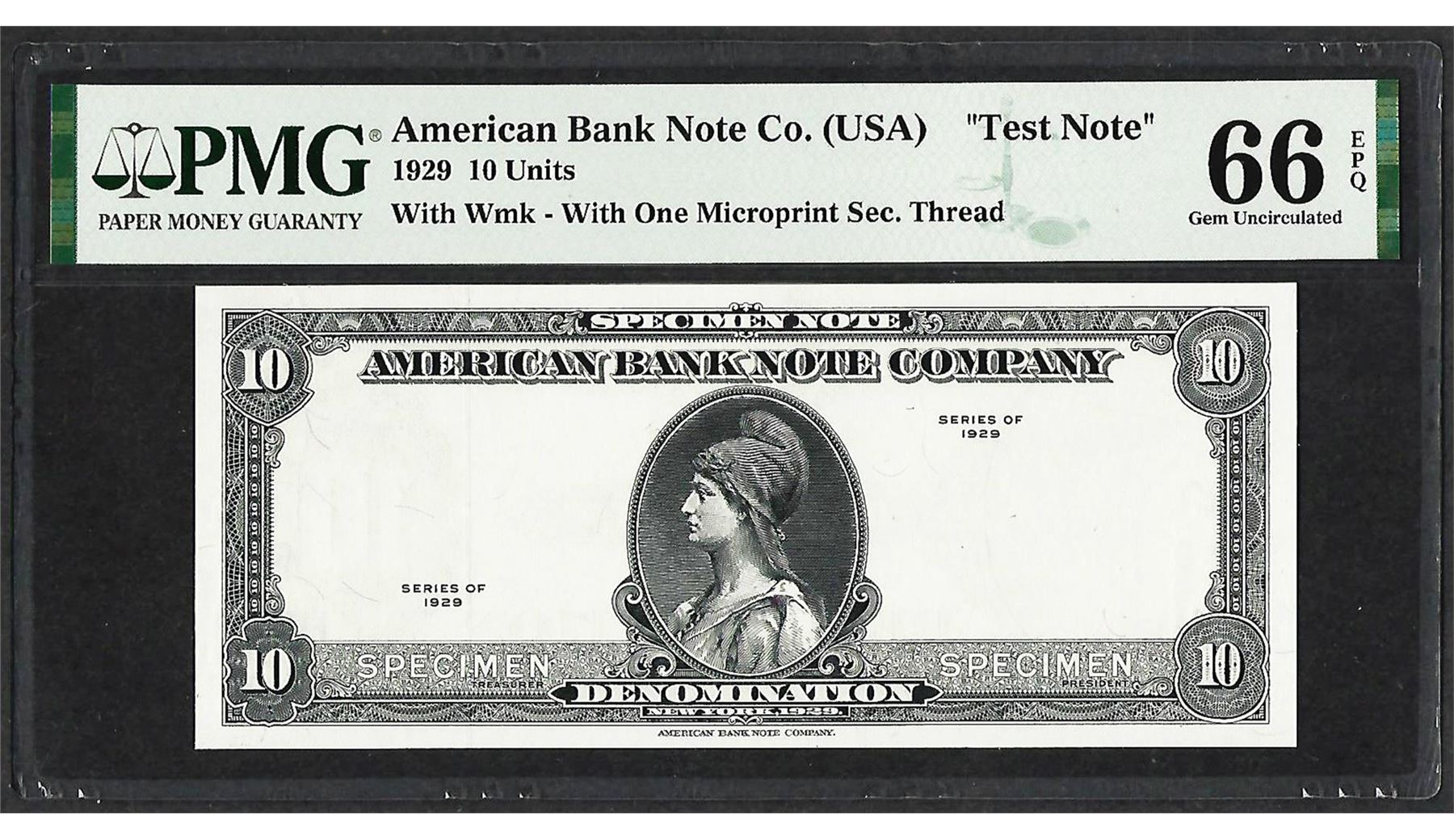 1929 10 Unit American Bank Note Co.  Test Note  PMG Gem Uncirculated 66EPQ