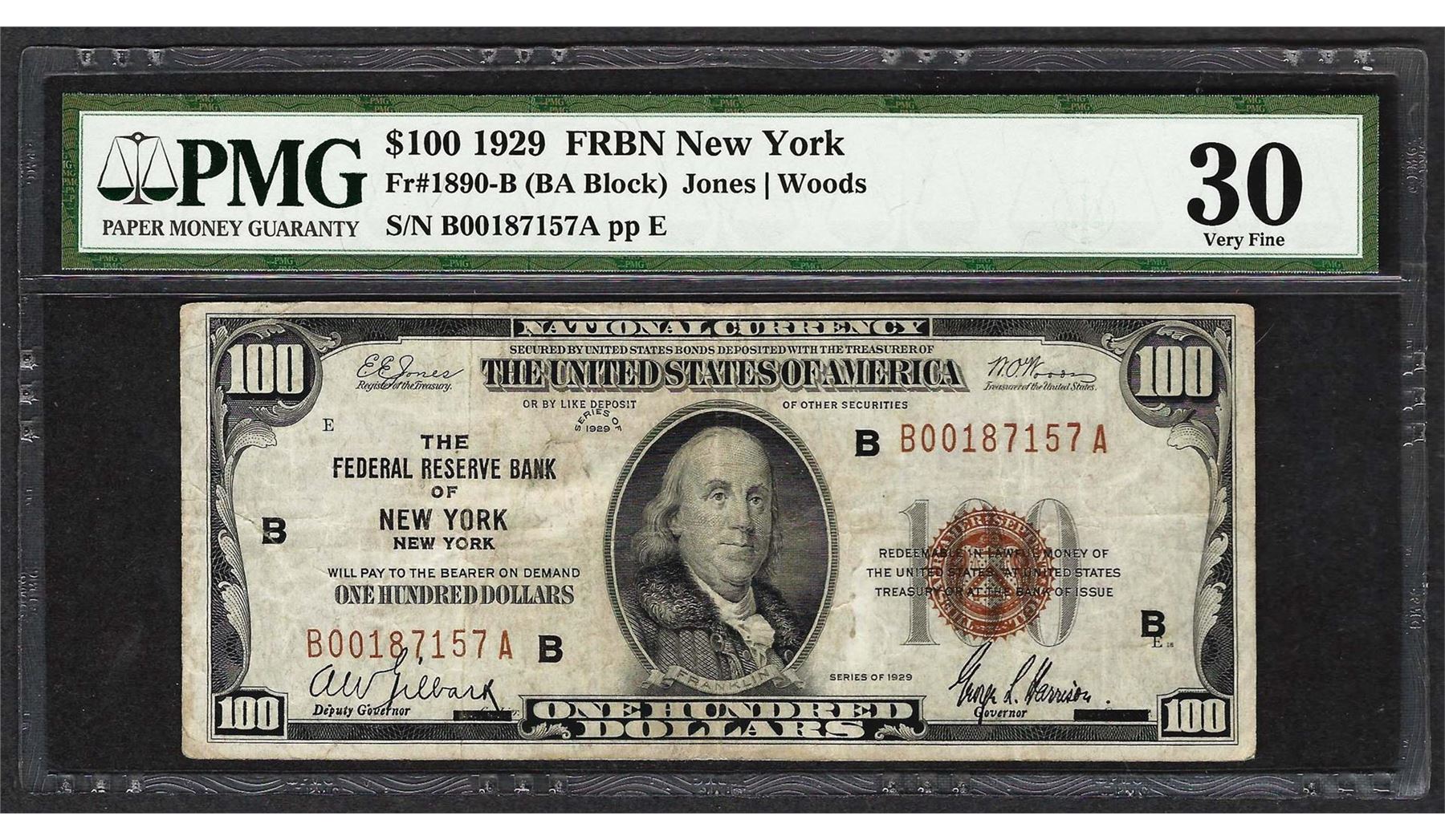 1929 $100 Federal Reserve Bank of New York Fr.1890-B PMG Very Fine 30