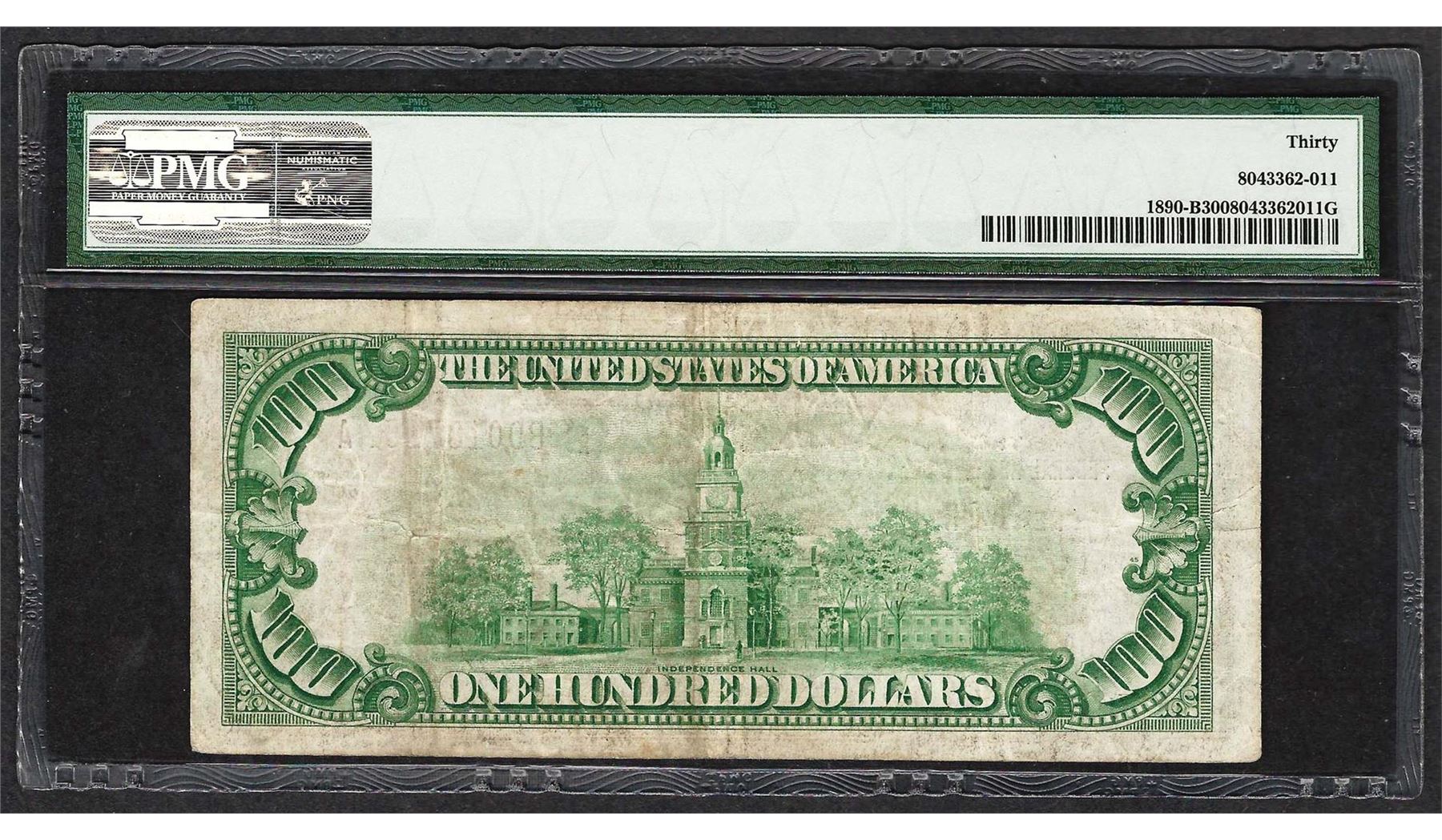 One 1929 $100 Federal Reserve Bank of New York Fr.1890-B PMG Very Fine 30. PMG Certified.