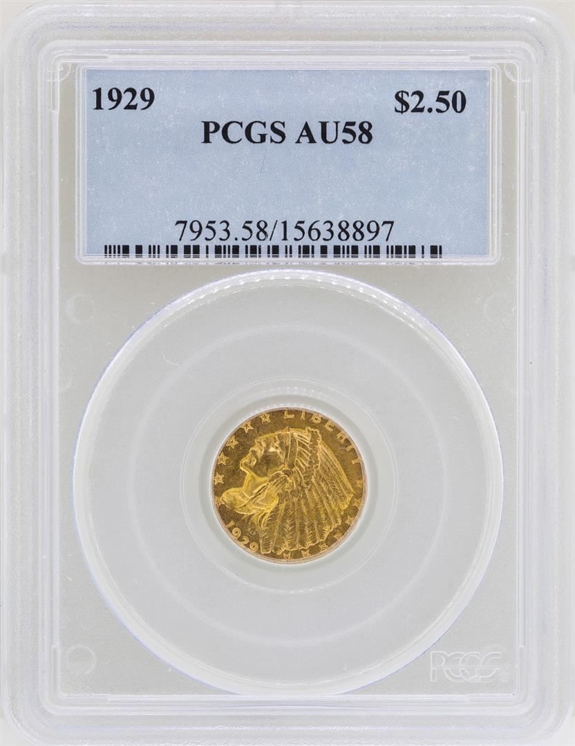 One 1929 $2 1/2 Indian Head Quarter Eagle Gold Coin PCGS AU58. PCGS Graded.