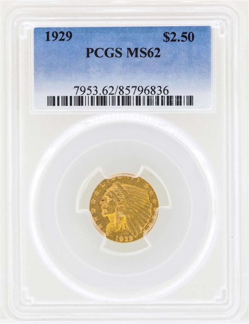 One 1929 $2 1/2 Indian Head Quarter Eagle Gold Coin PCGS MS61. PCGS Graded.