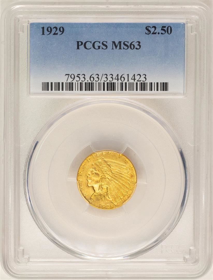 1929 $2 1/2 Indian Head Quarter Eagle Gold Coin PCGS MS63
