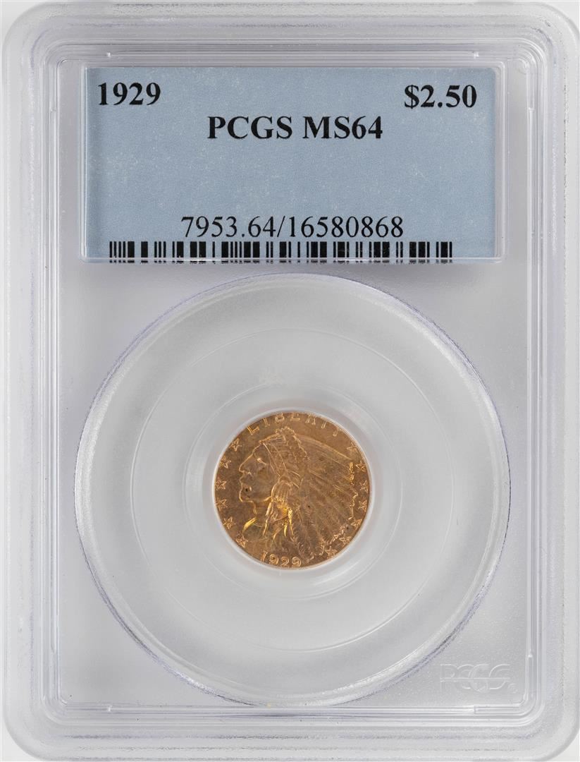 1929 $2 1/2 Indian Head Quarter Eagle Gold Coin PCGS MS64