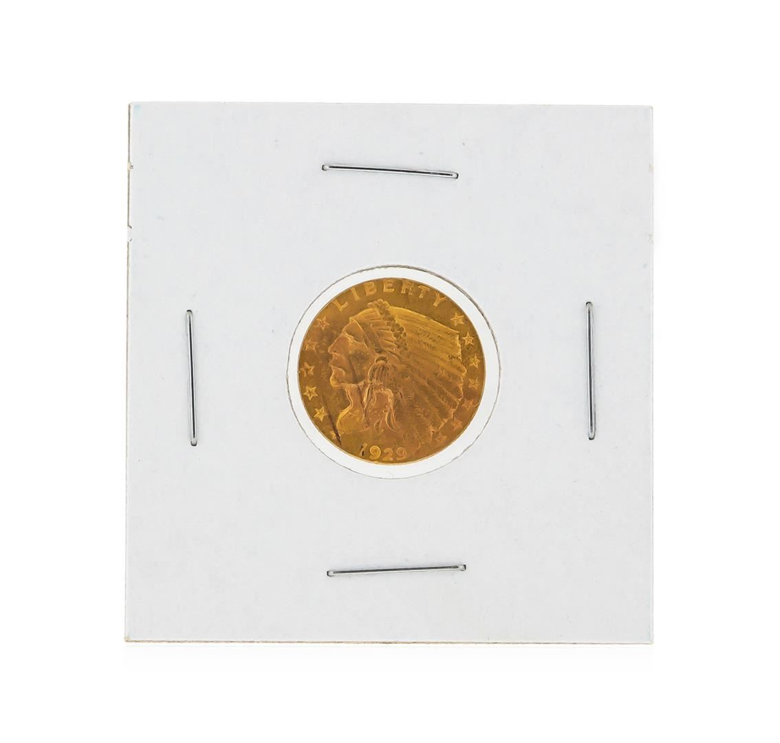One 1929 $2 1/2 Indian Head Quarter Eagle Gold Coin.