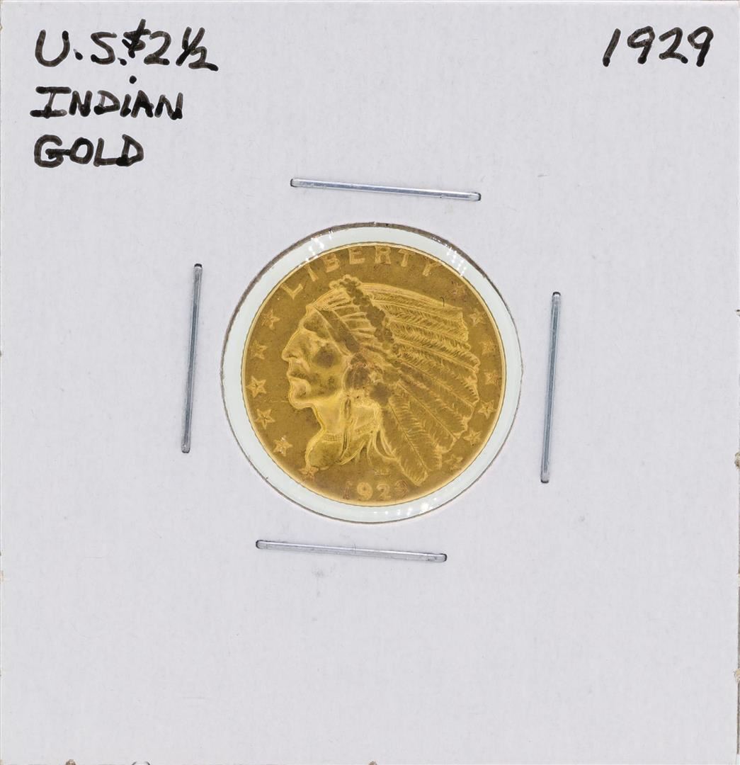 One 1929 $2 1/2 Indian Head Quarter Eagle Gold Coin.