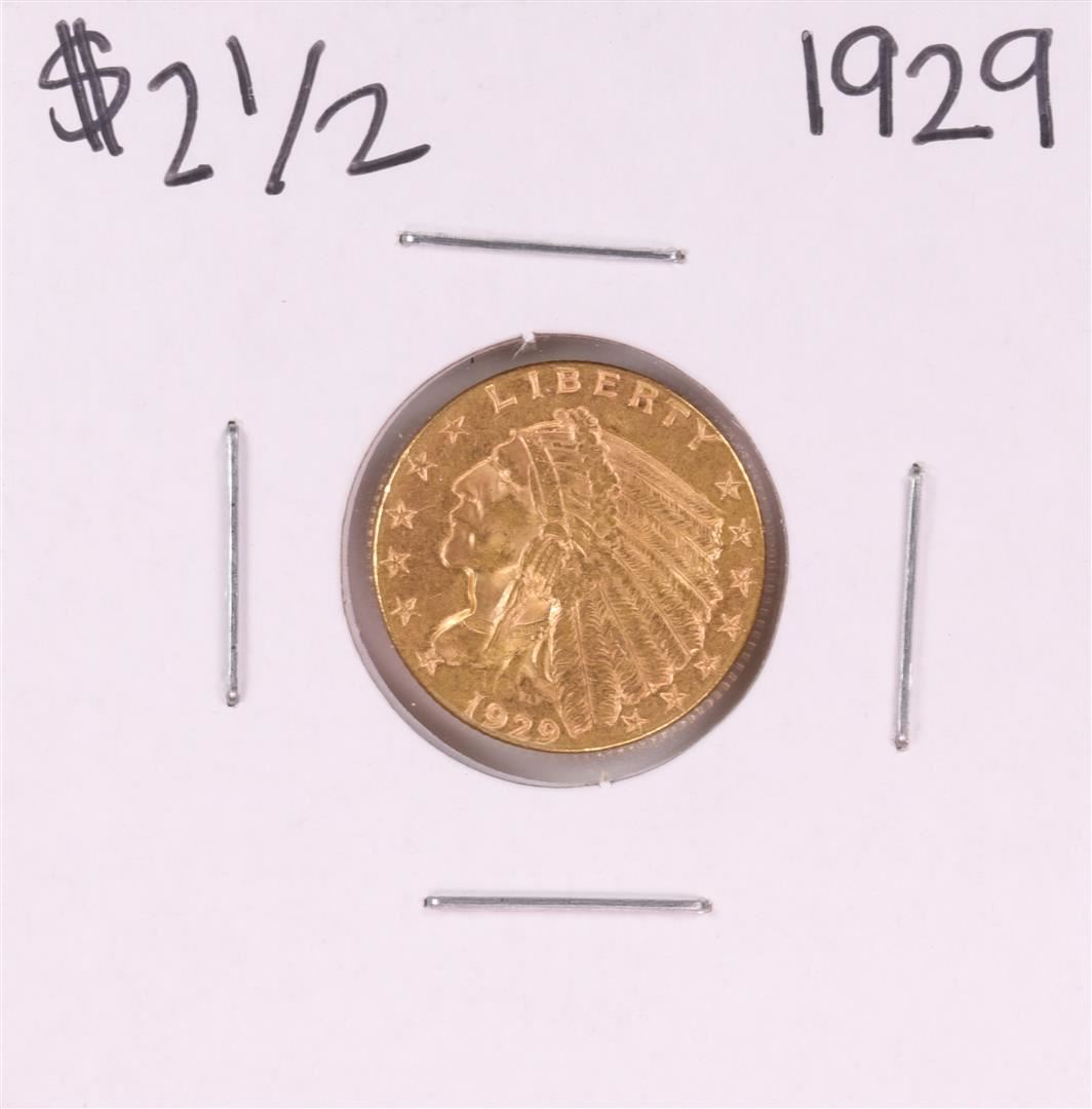 One 1929 $2 1/2 Indian Head Quarter Eagle Gold Coin.