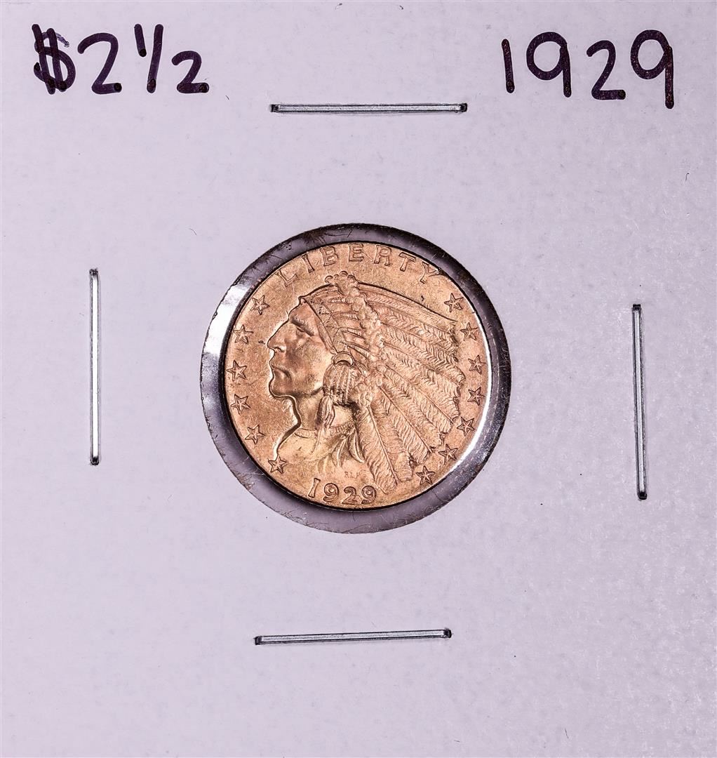 One 1929 $2 1/2 Indian Head Quarter Eagle Gold Coin.