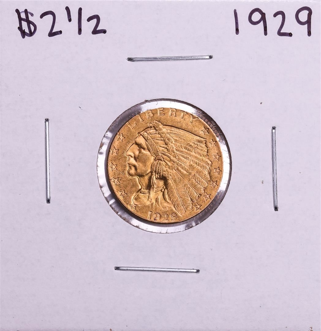 One 1929 $2 1/2 Indian Head Quarter Eagle Gold Coin.