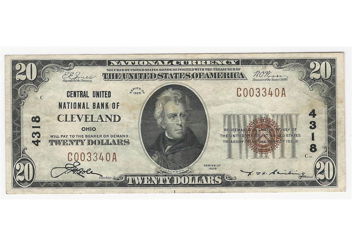 One 1929 $20 Cleveland Ohio National Currency Note.