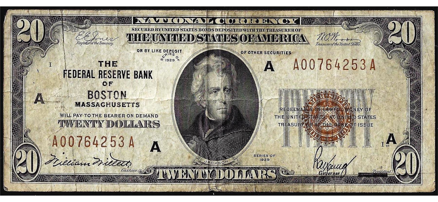 One 1929 $20 Federal Reserve Bank Note Boston.
