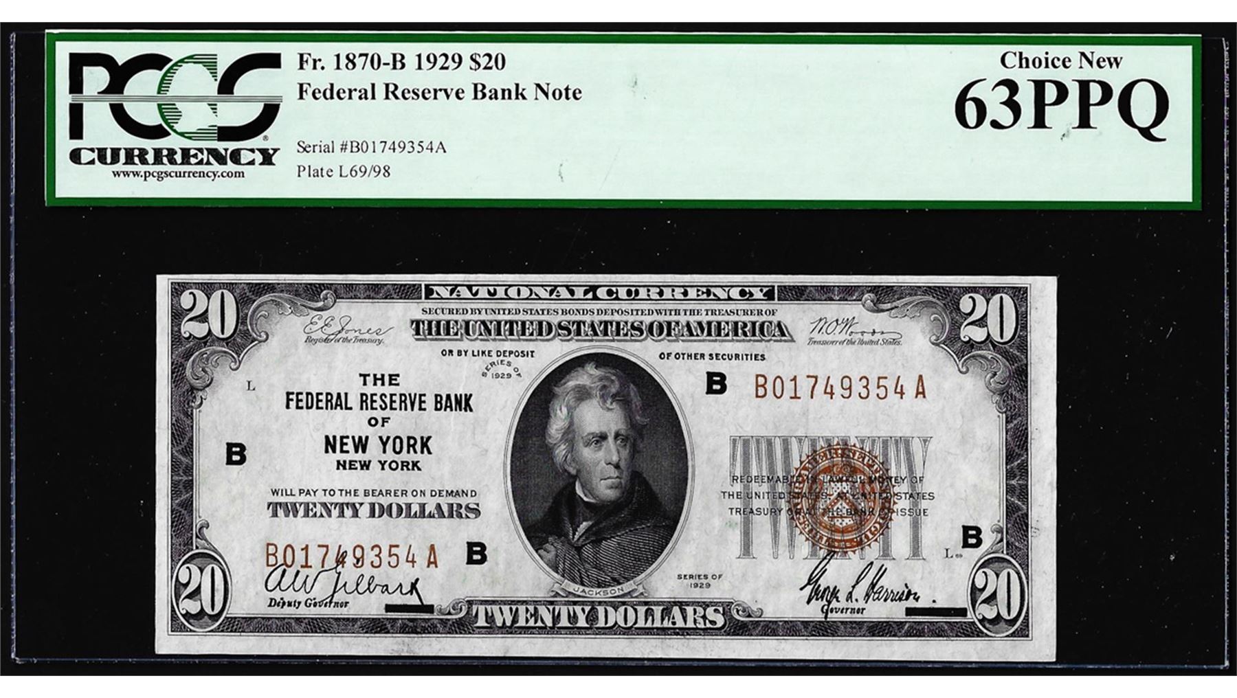 1929 $20 Federal Reserve Bank Note New York Fr.1870-B PCGS Choice New 63PPQ