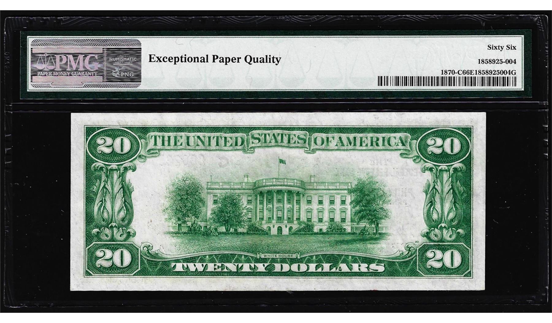 One 1929 $20 Federal Reserve Bank Note Philadelphia Fr.1870-C PMG Gem Uncirculated 66EPQ. PMG Certified.