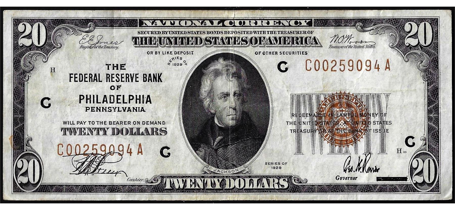 1929 $20 Federal Reserve Bank Note Philadelphia