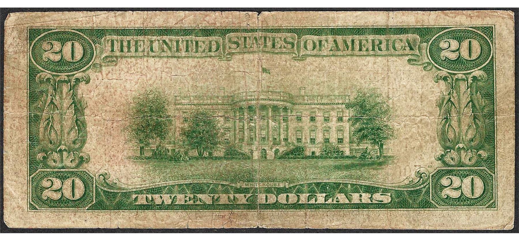 1929 $20 First NB of Woodsfield, OH CH# 5414 National Currency Note