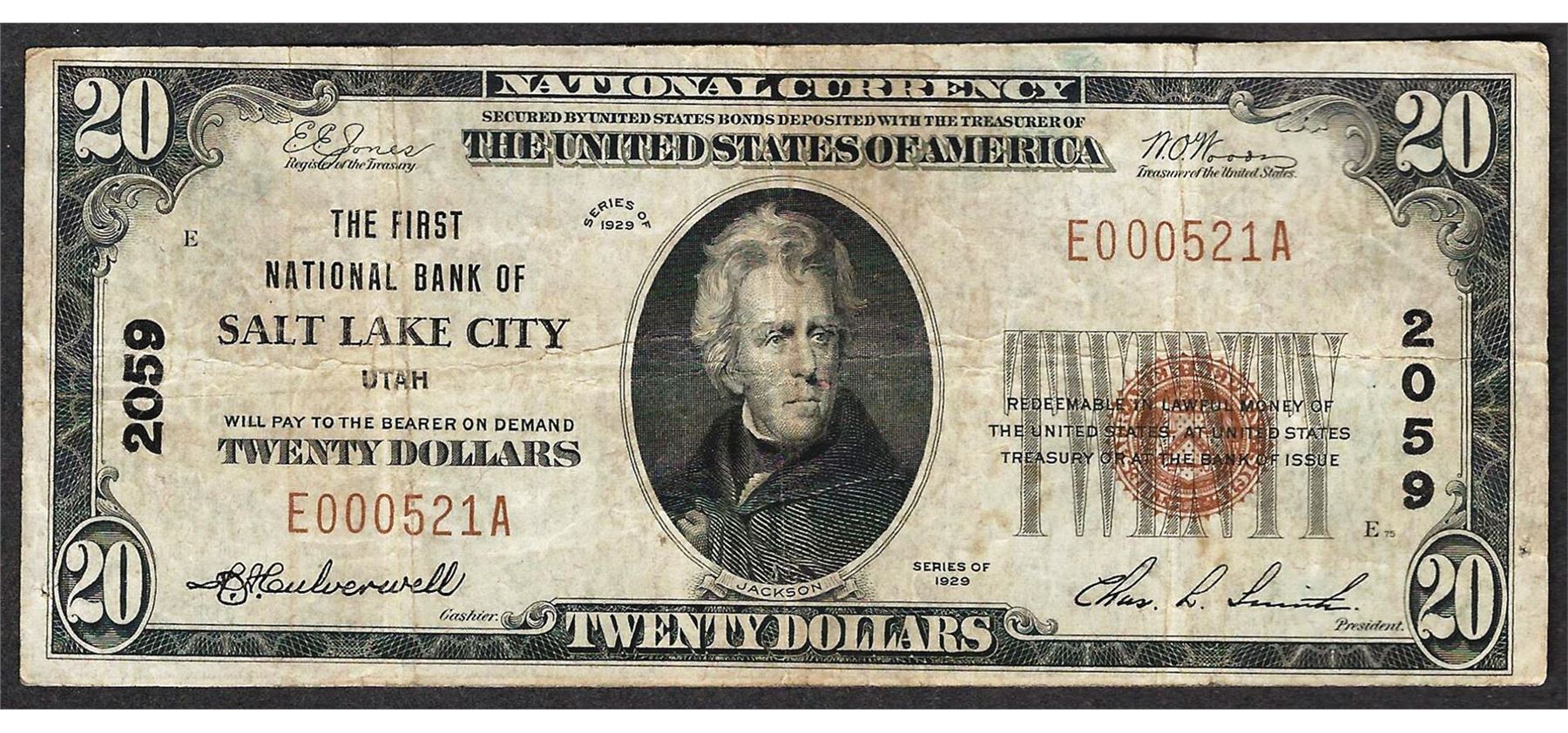 1929 $20 Salt Lake City Utah National Currency Note CH# 2059