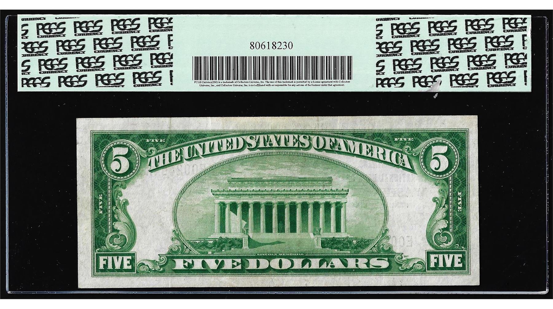 One 1929 $5 NB of Washington, PA CH# 3383 National Currency Note PCGS Extremely Fine 40. PCGS Graded.