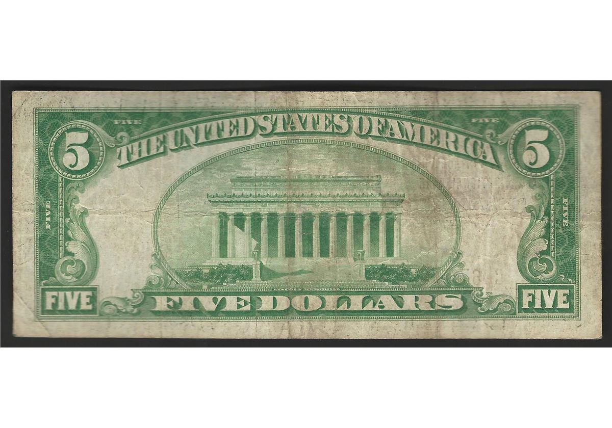 1929 $5 National Bank Note of Philadelphia Pennsylvania Charter #539