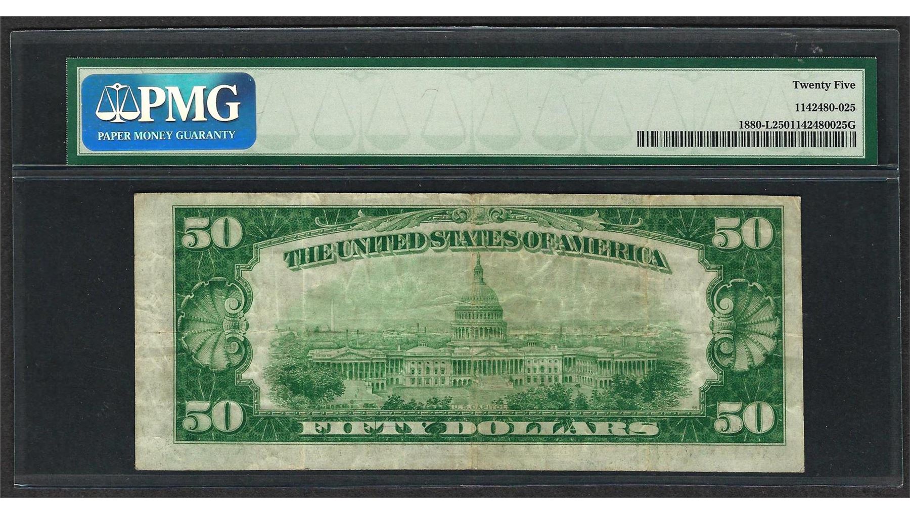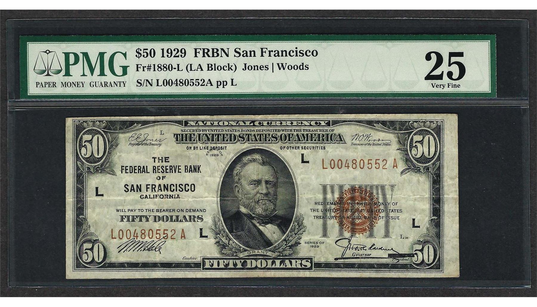 One 1929 $50 Federal Bank of San Francisco Note Fr.1880-L PMG Very Fine 25. PMG Certified.