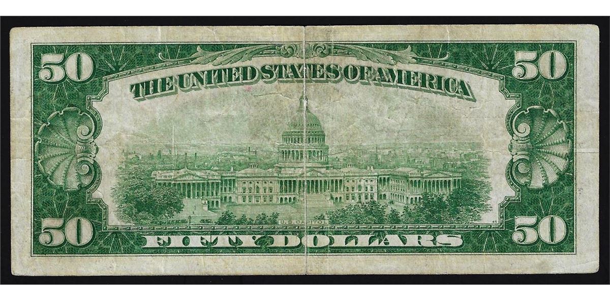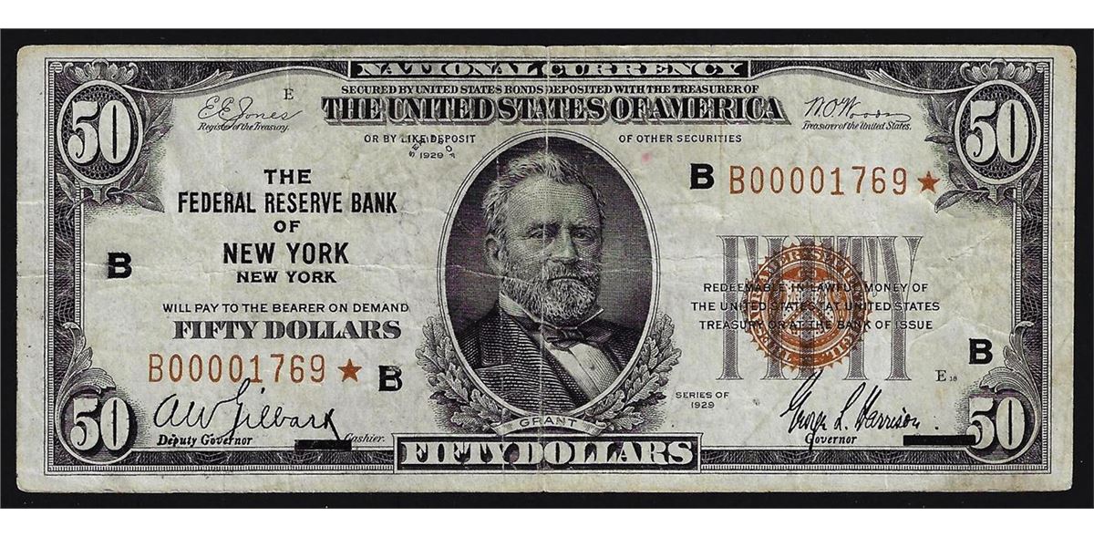 One 1929 $50 Federal Reserve Bank of New York STAR National Currency Note.