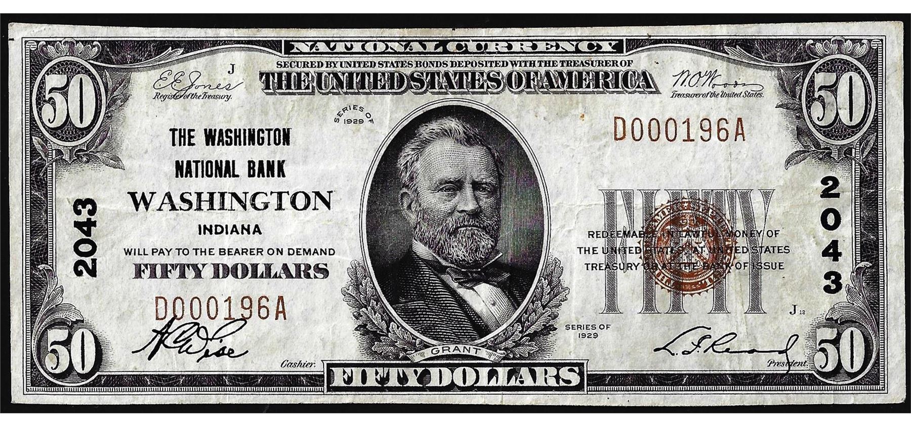 One 1929 $50 NB of Washington, District of Columbia CH# 2043 National Currency Note.