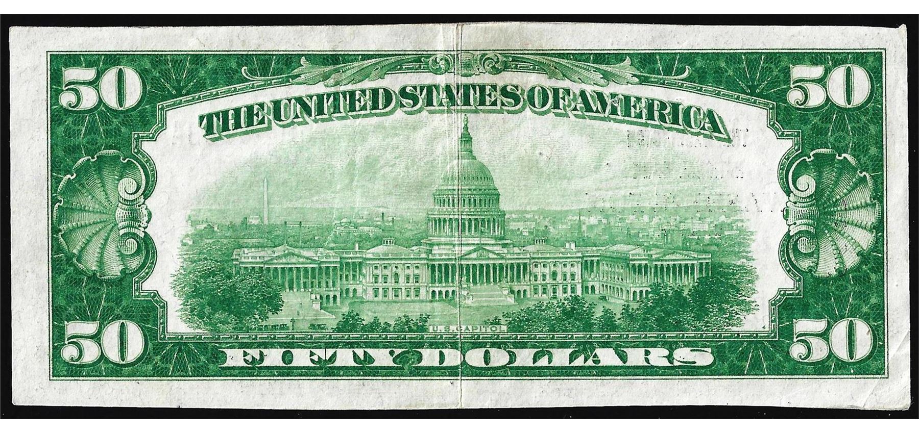 One 1929 $50 NB of Washington, District of Columbia CH# 2043 National Currency Note, there are a few pinholes in the middle area of the note.